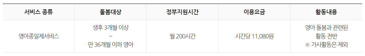 만 36개월 이하 영아 대상으로, 시간당 11,080원입니다.