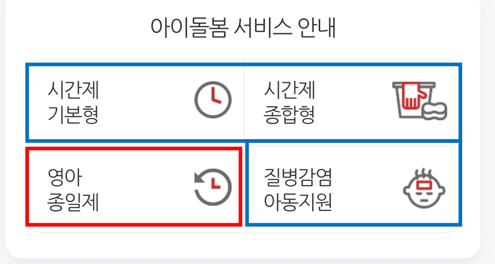 질병감염아동지원 서비스는 법정 감염병이나 유행성 질병에 걸려서 아이가 유치원, 학교 등을 가지 못할 때 도움 받을 수 있습니다.